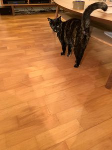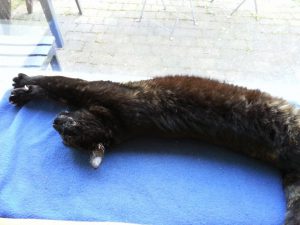 - het is een erg lieve poes, wel een heel eigen persoontje. 🙂 en komt liever niet op schoot. Ze drentelt wel graag om je heen en ze vindt het heerlijk om gekroeld te worden als ze slaperig is