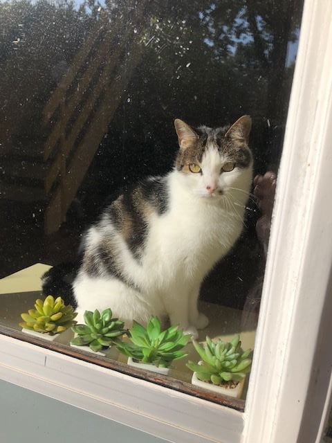 Ik vind mijn vrouwtje heel lief, ze knuffelt, aait en praat heel veel met mij, ik denk dat dit is om mij op mijn gemak te stellen. Ik vind veel dingen die er gebeuren nog steeds heel spannend. Andere geluiden, andere mensen, een andere tuin. Als antwoord geef ik kopjes en ga heel hard spinnen. Ik geloof dat mijn vrouwtje dat wel fijn vindt.