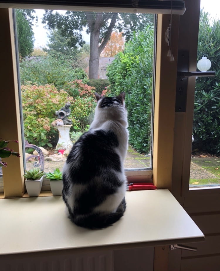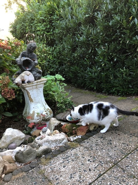 Één keer ben ik aangevallen door een kater hier in de buurt, daar ben ik zo van geschrokken dat ik sinds die tijd dichtbij huis en in mijn eigen tuin blijf.