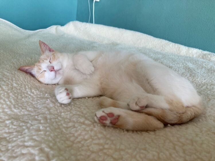 Boefje kan prima op bed slapen als je alleen in bed ligt. Als je met z’n tweeën in bed ligt, vindt ze het al snel te onrustig. Dit is overigens geen must: je kan haar ook prima buiten de slaapkamer laten met de deur dicht.
