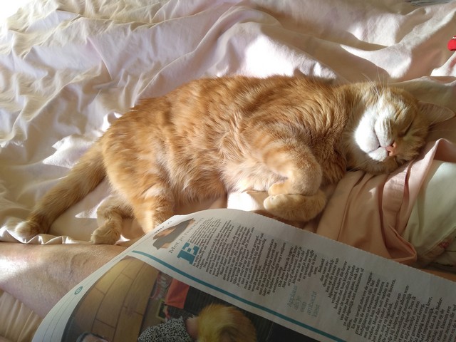 Zondagochtend was heel speciaal, ik haalde koffie en kranten naar bed om daar te lezen, Teal’c vond dat heerlijk.