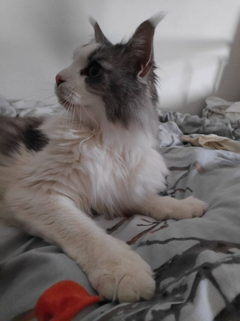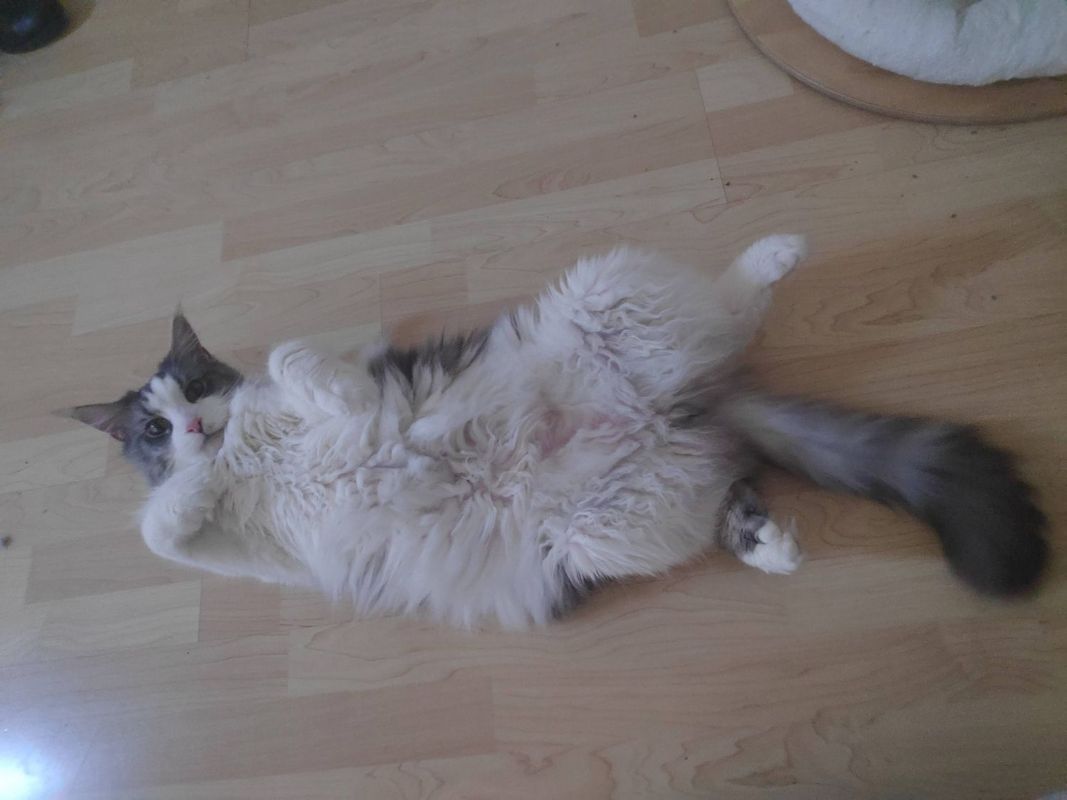 - grootte/bouw: veel mensen vinden het fijn om te weten of een kat groot, zwaar of juist heel licht of klein is. Drogo is door het ras natuurlijk een forse kat en hij weegt op dit moment 6,93 kilo. De baasjes vinden hem door gebrek aan beweging een pietsje mollig, maar de dierenarts heeft daar bij de controle niets over gezegd (en meestal zijn dierenartsen daar wel heel alert op omdat overgewicht bij katten vaak voorkomt en een probleem is!)
