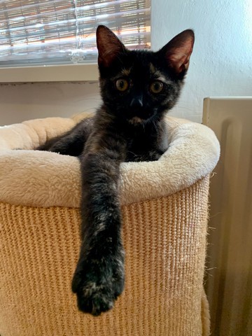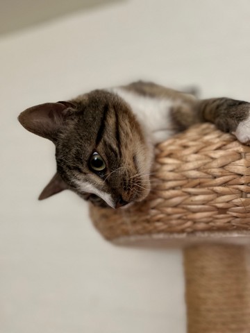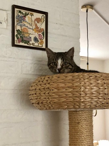 Wijntje is de eerste kat die graag ‘op de bovenste verdieping’ slaapt. 🙂
