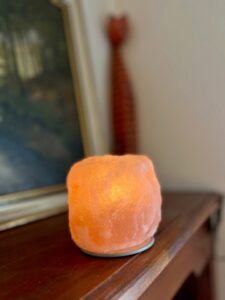 zoutlampen of Himalaya-zoutlampen. Er zijn katten die er graag aan likken en vervolgens met een zoutvergiftiging bij de dierenarts belanden. Ik heb een variant waar een waxinelichtje in kan. Die staat op de hoogste boekenkast in huis waar de katten niet bij kunnen. Houd er ook rekening mee dat zoutlampen ‘zweten’, dus zet er altijd een onderzetter onder om het vocht op te vangen!