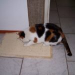 Koffie, Friet en Wijntje zijn allemaal géén horizontale krabbers, mijn vorige katje Chloe was dat juist wel, een horizontale krabber bij uitstek! Ze krabde graag haar nagels uit aan de schoonloopmatten en aan een sisal kleed dat ik speciaal voor de poezen heb gekocht.