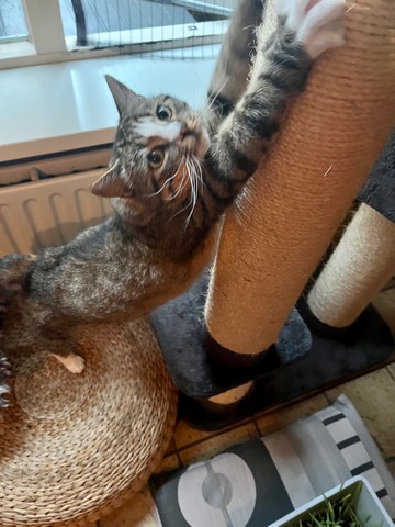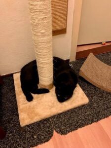 In het bericht over Wijntje heb ik beschreven hoe ik hem het krabben aan de meubels afgeleerd heb. Ik had al door het hele huis verticale en horizontale krabmogelijkheden – en ook zéker op allerlei strategische plaatsen die voor katten belangrijk zijn. Hij had nooit een krabpaal gehad en moest het gewoon nog leren waar het wel en juist niet de bedoeling was om zijn nagels aan uit te krabben.
