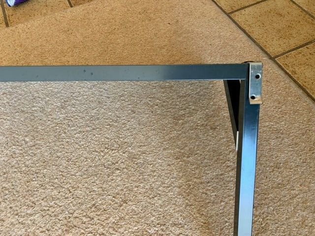 De ligplankjes met het witte aluminium ‘onderstel’ komt van Kattenren.com in Best. Ook leverbaar in antraciet. De plank is van weerbestendig materiaal en wat ruw/stug, waardoor katten niet uitglijden als ze erop springen. Dit plankje hangt erg goed vast met 4 ophanghaakjes; het komt niet los van het renpaneel. Dit ligplankje kost € 75,- (tarief 2022) en tot mijn spijt wordt dit plankje niet per post verzonden, dus moest ik op zoek naar andere oplossingen.