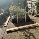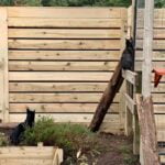 in plaats van hardhout heb ik gekozen voor geïmpregneerd naaldhout. Dat scheelt echt enorm in de kosten. En geïmpregneerd naaldhout gaat 10 tot 15 jaar mee – en dat is voor mij voldoende. Daarna zie ik wel weer verder. De schuttingen hebben hier weinig geleden (er is nog nooit een schutting omgewaaid bijv., door hoe de wind staat hier) en de oude schuttingen hebben hun ‘houdbaarheidsdatum’ ver overschreden, dus ik maak me daar maar niet al te druk over 🙂