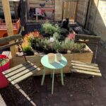 Ik ben zó tevreden over de ligplankjes dat ik er in december 2022 nog twee heb bijbesteld en in mei 2023 nóg twee. 🙂 Opnieuw zeer zorgvuldig verpakt en snel geleverd. Ik ben er heel blij mee! Ook op deze plankjes heb ik met Bison Polymax (lijm) kunstgrasmat gelijmd. De kunstgrasmat komt van FloorDirekt en ziet er zeer natuurlijk uit. Ik heb de variant ‘Riviera’ en ik heb het ook als decoratie op de grond liggen op het terras. Ik ben geen ster in het nemen van rechte foto’s, sorry. 🙂