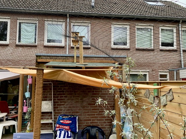 Nettenlijn.nl in Cuijk is werkelijk een formidabel bedrijf met kwaliteitsproducten. Ik ben Nettenlijn ontzettend dankbaar dat ze mij hebben behoed voor een heel grote fout, door mij zorgvuldig uitleg te geven over de netten. Er was hier een ‘dure schuttingboer’ over de vloer voor een offerte. Hij had nog nooit gewerkt met kattennet en de schuttingboer zei dat ik ‘gewoon 20 x 20 meter moest bestellen’ en dan kwamen ze er wel uit. Nou, zo werkt dat dus eventjes niet. Buiten het feit dat ik dan heel wat meters kattennet had kunnen weggooien (!), is zo’n enorm stuk net voor een onervaren iemand absoluut niet te verwerken.