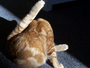 Om kort te gaan: ik denk dat een kat zijn eigen billen niet als vies ervaart. 🙂
