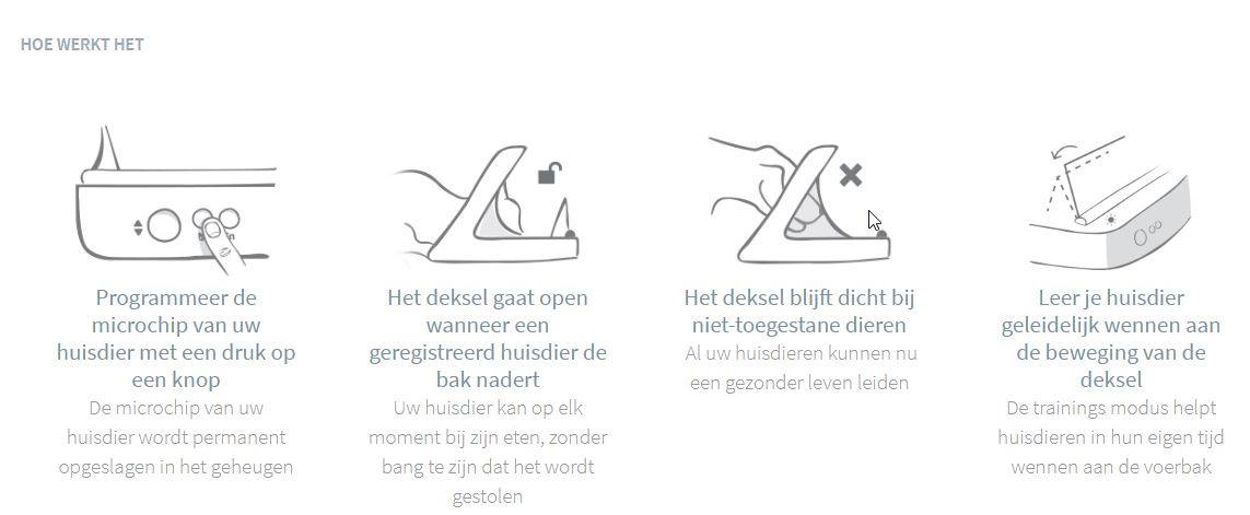 - een microchip voerbak waarmee je je katten gescheiden kunt laten eten (meer info)