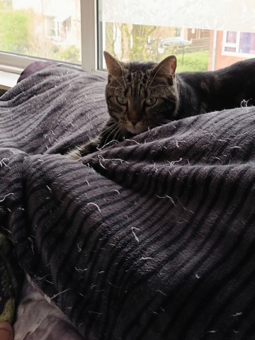 Hij vind het fijn om ’s nachts bij zijn vrouwtje op bed te liggen. Vaak ligt hij dan bovenop haar. Na een tijdje wordt het te warm en gaat hij naast je liggen.