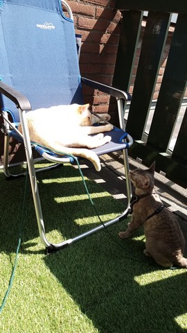 Of het een bijzondere klik is tussen Lori en (naam kat) dat zou ik niet zeggen. Misschien hebben ze nog meer tijd nodig? (Naam kat) is een lieverd, ik noem hem “Engeltje” maar ook erg passief. Hij is meer van zitten omgeving te bekijken en zeker een “dromer”.