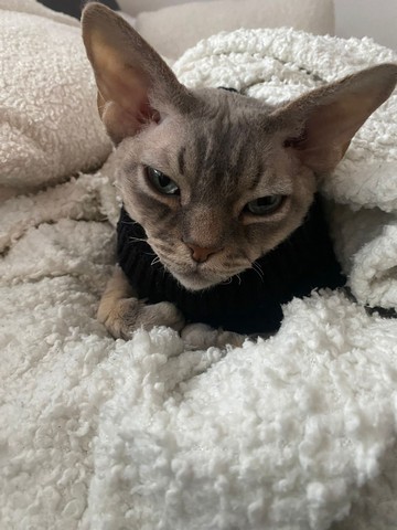 Echt wel iets om over na te denken in deze tijd met hoge kosten van energie. Je zult in de herfst en winter écht moeten stoken. Maar ook ’s nachts mag de temperatuur in huis niet onder de 17 graden uitkomen. Veel Sphynxen en Rexen dragen shirtjes of truitjes. Niet om modieus te doen, maar simpelweg functioneel. Ze slapen natuurlijk ook heel graag in en onder zachte dekentjes, ook bij jou op schoot.
