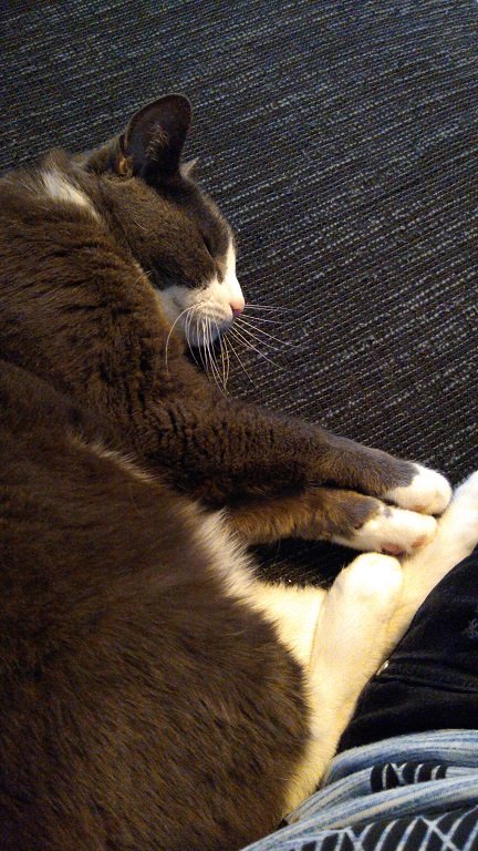 Toen wij op bed lagen vloog hij plotseling op bed en gaf hij enorme kopstoten, begon hij heel erg te spinnen/knorren en wilde hij maar wat graag tussenin liggen. Toen kwamen wij erachter dat hij ook enorm van pompen houd, ook met zijn nagels. Die nacht dan ook weinig geslapen.