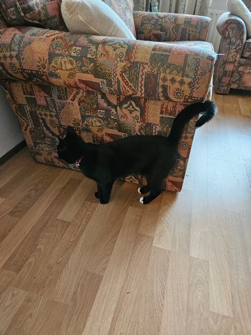 Mila is een ontzettend lief en sociaal poesje. Ze is makkelijk in de omgang en krijgt heel graag aandacht. Ze komt ook lekker op schoot. Een ontzettend gezelligheidsbeestje. ♥ Ze ziet er ook grappig uit met haar twee witte teentjes aan de achterpootjes. Het baasje maakt eigenlijk nooit foto’s. We hebben hem gevraag nog wat meer foto’s van Mila in te sturen, hoewel je op deze twee foto’s eigenlijk al wel kunt zien hoe leuk ze is. 🙂