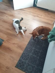 Wie zijn wij? [x] (55) en [x] (52) en wij wonen samen met onze 2 poezen in [x]. We zijn allebei vaak thuis. Ik werk 2 dagen in de week. [x] werkt fulltime waarvan 2 dagen thuis. We kunnen (en willen 😉) Ollie dus veel aandacht geven. We wonen in een eengezinswoning waar er op elke verdieping genoeg slaap, chill, verstop en krab plekken te vinden zijn. Uiteraard is speelgoed ook aanwezig 🙂 Wij hebben een tuin. Deze is afgeschermd met stroomdraadjes omdat wij onze poezen graag dichtbij huis houden. We hebben een kattenluik dat werkt met de chip van de poezen. Dus op termijn zou Ollie daar ook gebruik van kunnen maken.