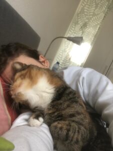 slaapkamer: voor veel baasjes is het fijn om te weten of een kat gewend is op de slaapkamer te komen. Sjimmie mag nu op bed slapen en is rustig ’s nachts en loopt niet te spoken