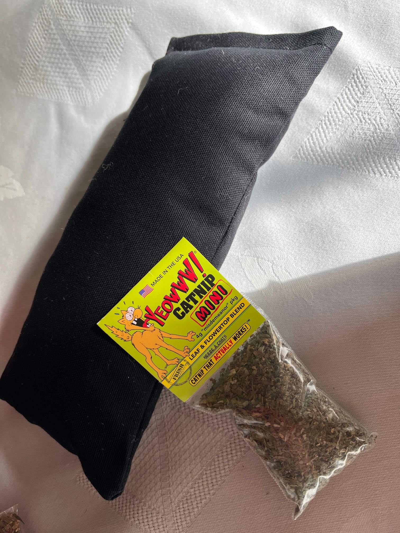 Deze handgemaakte trappelkussens zijn verkrijgbaar met verschillende optionele geurverrijkende toppings: biologische valeriaanwortel, biologisch kattenkruid en dunne of dikke matatabi-stokjes.