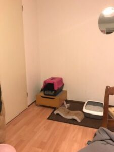 Ik gaf de opvangers die hier kwamen altijd de keus. Hun eigen kattenbak, met het voor hen vertrouwde kattengrit, kwam in de opvangkamer te staan. Maar ook twee ándere schone kattenbakken (groot en zonder kap).