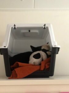 Als Chloe even onderweg was in de reismand, liet ze van pure doodsangst haar urine en vaak ook ontlasting lopen. Erg zielig voor het meidje. Ik was dan ook heel blij met deze tip voor betaalbare puppy training pads! Zo hielden we het mandje schoon. Bij de dierenarts gooiden ze het bevuilde padje meteen in de vuilnisbak en dan kon Chloe relatief schoon mee terug naar huis, op de badhanddoek die onderin het mandje lag – en schoon bleef .