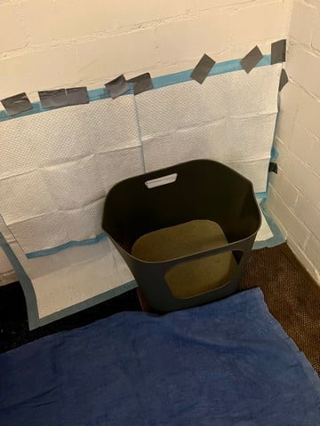 Uiteindelijk heb ik hier zelf toch een grote, hoge kattenbak voor gekocht. Peperduur, maar heerlijk groot voor al mijn katten en geen gedoe meer met elke dag nieuwe puppymatjes ophangen.
