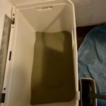 Bij thuiskomst gooi ik de handdoek meteen in de was, op 60 graden met Biotex Groen-wasmiddel is die voor een kat weer als nieuw. Het mandje maak ik onder de douche schoon met Odor-Guard omdat dat alle geuren verwijdert voor een kat (een sopje van Biotex Groen-wasmiddel werkt net zo goed om de reismand te ontgeuren).