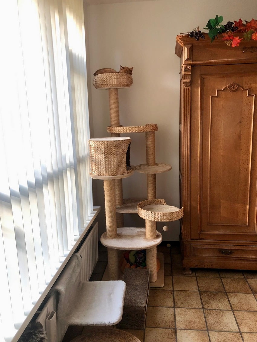 - gebruikt een krabpaal: Tijger krabt graag verticaal en dat doet hij heel goed. Een fijne krabpaal is belangrijk voor hem in zijn nieuwe thuis