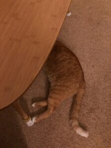 - eenkennig of op zichzelf: zeker niet! Hij neemt wel – zoals de meeste katten – af en toe wat “me-time”, dan gaat hij ergens rustig in een andere kamer een tukje doen 🙂