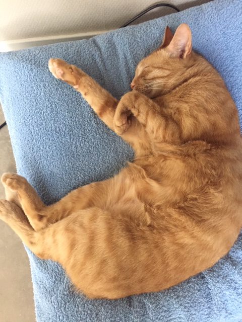 ’s Ochtends en ’s avonds speelt hij graag, maar overdag slaapt hij heerlijk op een rustig plekje in huis, wel het liefst in de buurt van mensen.