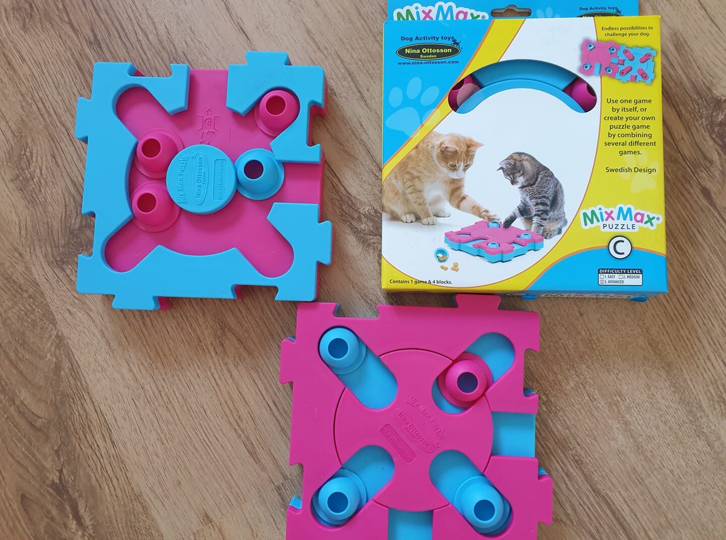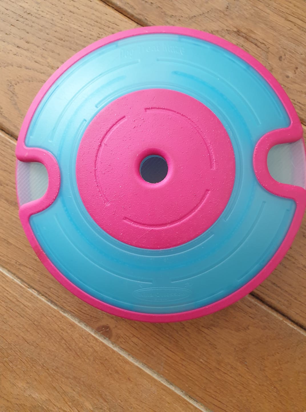 Met veel dank aan Ellen, die deze tip gaf op onze Facebookpagina: “Deze vinden wij de leukste (tot op heden). Net zolang wiebelen met de pootjes tot er een brokje uit komt. En deze geeft dus ook meteen wat lichaamsbeweging. De brokjes gooi je er boven in en dan moeten ze door een doolhof voor ze er uit komen aan de zijkant. Het is eigenlijk voor een hond, maar doordat het roze gedeelte geen hard plastic is (maar een beetje rubberachtig) werkt het voor de kat ook prima. We spelen er vaak samen mee, om de beurt laten wiebelen. Het heet: dog treat maze van Nina Otterson (nog steeds te koop, alleen de kleuren zijn anders nu).”