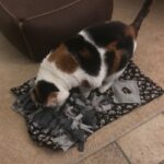 Een voerpuzzel, activityboard, snuffelmat of voerbal mag in eerste instantie niet worden gegeven in plaats van een portie eten. De kat moet het eerst leren gebruiken en er ook plezier aan beleven om op die manier eten bij elkaar te scharrelen. Er zijn katten die het écht niet willen of kunnen leren en dan leiden deze vormen van voerverrijking tot frustratie. In dat geval werkt het dus averechts en/of krijgt de kat te weinig eten binnen! Probeer je kat het te leren met positieve stimulatie, door er in het begin onweerstaanbare snoepjes in te doen en zelf “blij mee te spelen” en te laten zien hoe het werkt/te helpen.