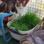 • boots een natuurlijke omgeving na op het balkon door er bakken of bakjes neer te zetten met planten en natuurlijke materialen. Een geweldige tip van onze trouwe Facebookvolger Inka: kattenbakken met kattengras! De foto’s van Inka en haar knappe katje (klik op de foto voor een vergroting). Belangrijk: zet kattengras dat je zelf maakt van gerst, rogge, haver of tarwe NOOIT in je tuin! Al deze grassoorten maken heel nare grasaren die jouw kat in zijn bek, ogen, oren of zelfs vast in de huid kan krijgen. Bijna altijd moet de dierenarts eraan te pas komen om een grasaar te verwijderen!