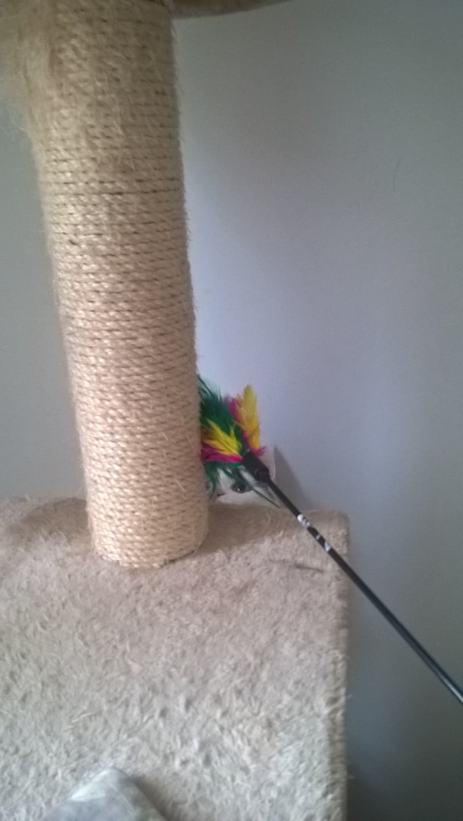 • ook in de tuin kun je natuurlijk spelen met een hengel of door het weggooien van speelgoed, of verstopspelletjes doen met voer (als dat geen ongedierte aantrekt natuurlijk)