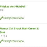 Snoepjes en snacks tegen haarballen heb ik ook meteen meebesteld. We hebben ze nog lang niet allemaal uitgeprobeerd (eind juni 2023), want ze eten hier heel weinig snoep. Ze geven er weinig om en áls ik het al geef is het hooguit 1x per dag een paar snoepjes per persoon, maar soms ook een aantal dagen helemaal niet. Hoewel ze hier niet houden van liquid snack en kattenpudding, vonden ze de creamy snacks uit onderstaande bestelling wel lekker (klik op de printscreens voor een vergroting).