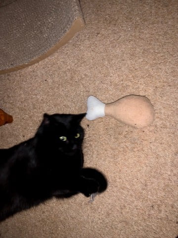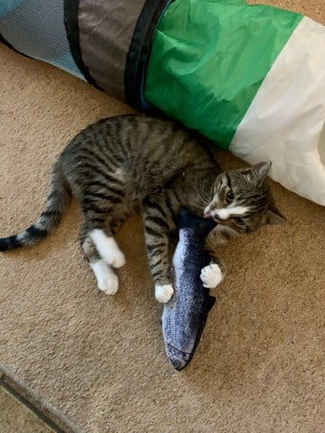Voor de meeste volwassen katten is 10 minuten spelen per keer wel genoeg. Met de eigenaar sámen spelen vinden ze vaak het leukst. Ik heb in 2024 drie jonge katten. Ik speel ’s morgens en soms ook nog ’s avonds met ze, totdat ze geen zin meer hebben. Meestal hebben ze er na maximaal een half uur wel genoeg van. Ik speel met een hengel en verschillende speeltjes eraan. Ik heb verschillende speelgoedjes die ik eraan hang om af te wisselen, ze zijn na een paar weken steeds wel uitgekeken op het speelgoedje.